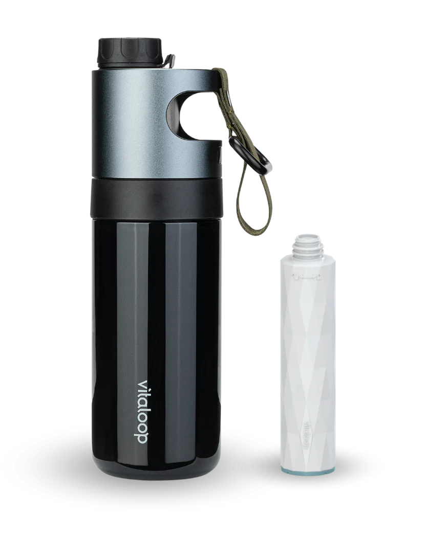 Wyposażony w najnowszą, wielostopniową technologię filtracji NanoFlow, Vitaloop to pierwsza na świecie butelka na wodę, która dostarcza do 480 ml wyraźnie czystszej, zdrowszej i smaczniejszej wody. Z dowolnego źródła wody, do którego możesz mieć dostęp.